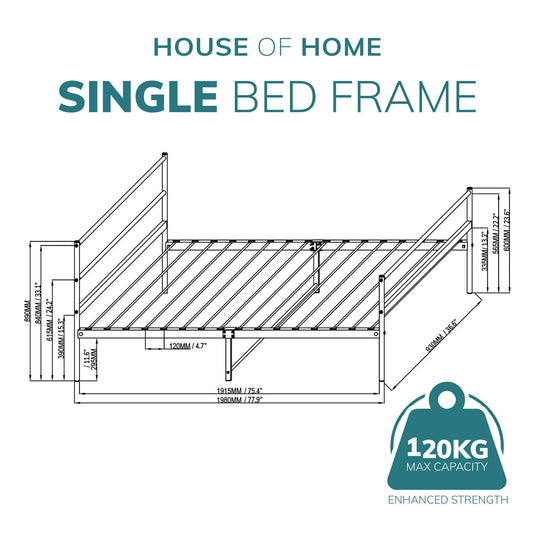 Single Metal Bed Frame Extra Strong Stylish Modern Bedroom Storage Sturdy Design