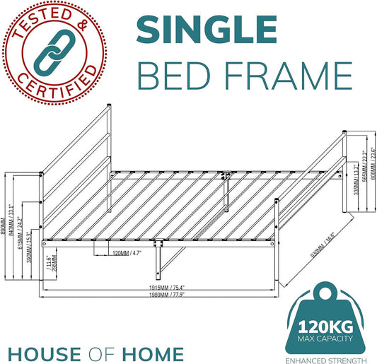Extra Strong Single Metal Bed Frame Kid Adult Bedroom White Easy Assembly
