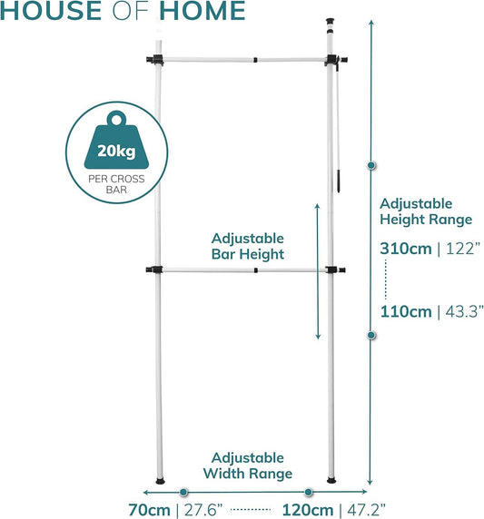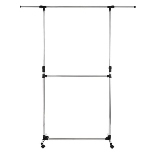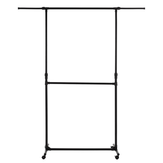 Double Clothes Rail, Extended Top Rail Adjustable Height, Black