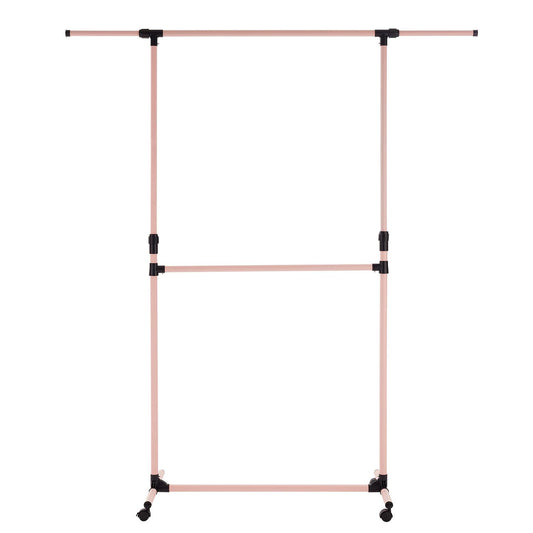 Double Clothes Rail, Extended Top Rail Adjustable Height, Pink
