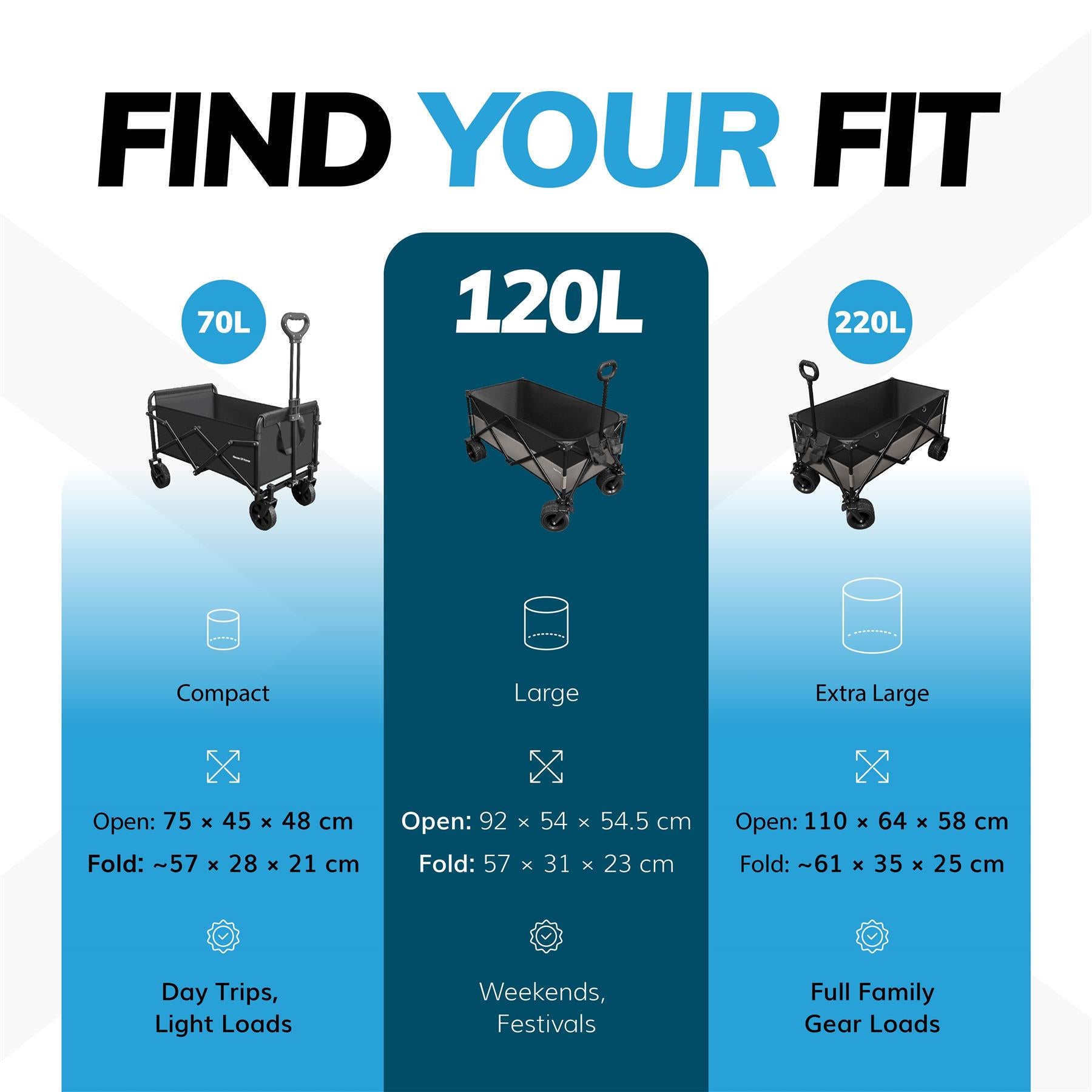 120L Foldable Utility Trolley Garden Home Camping Festivals Collapsible Cart, Carry Bag
