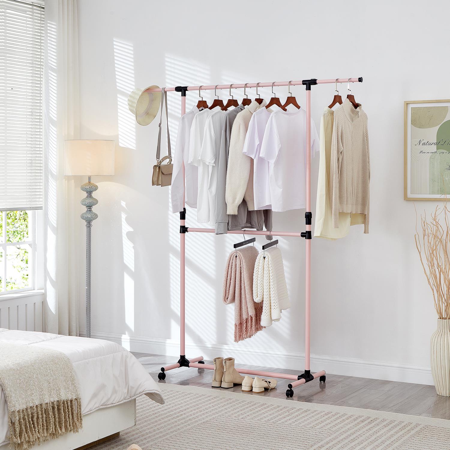 Double Clothes Rail, Extended Top Rail Adjustable Height, Pink