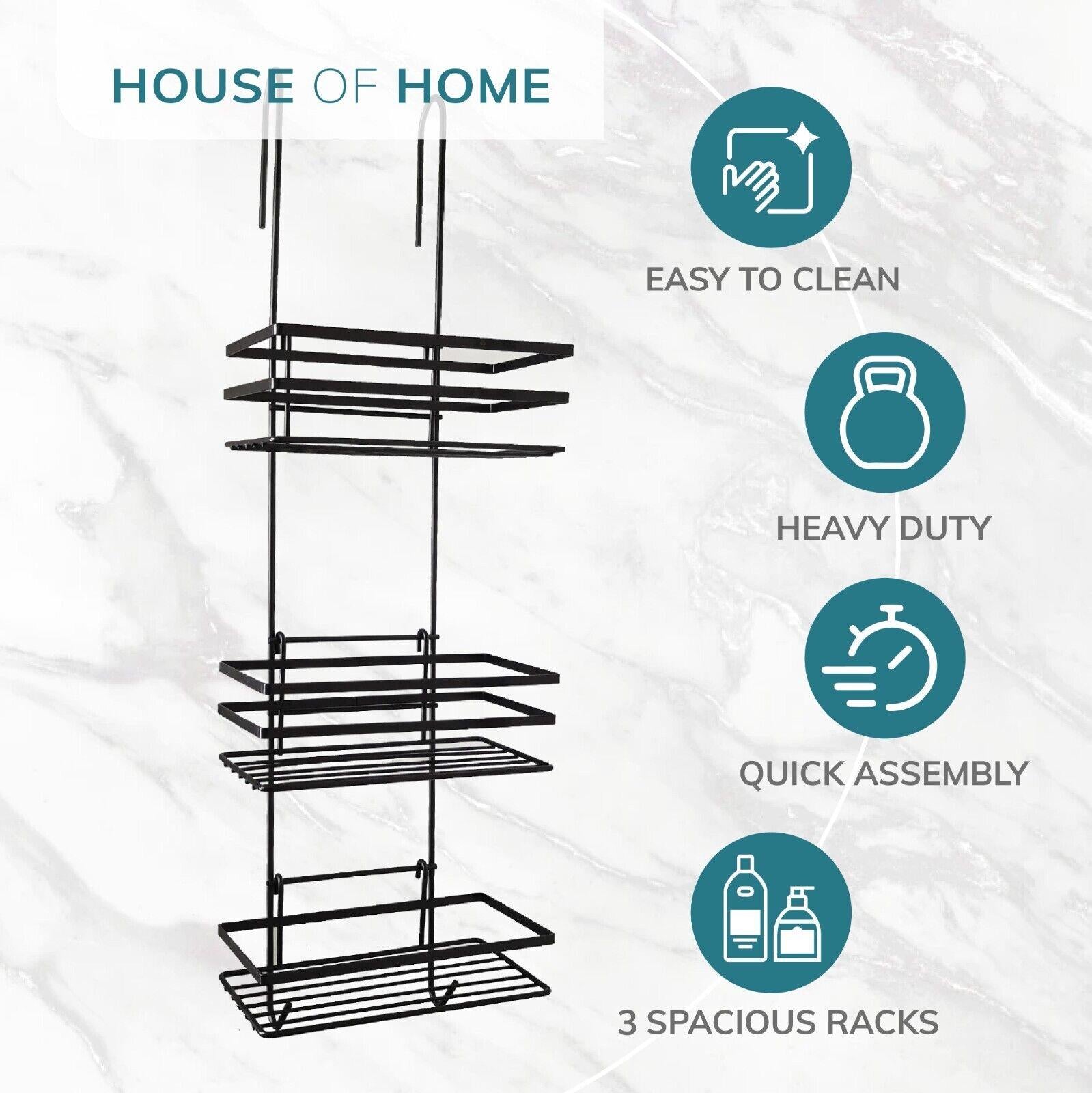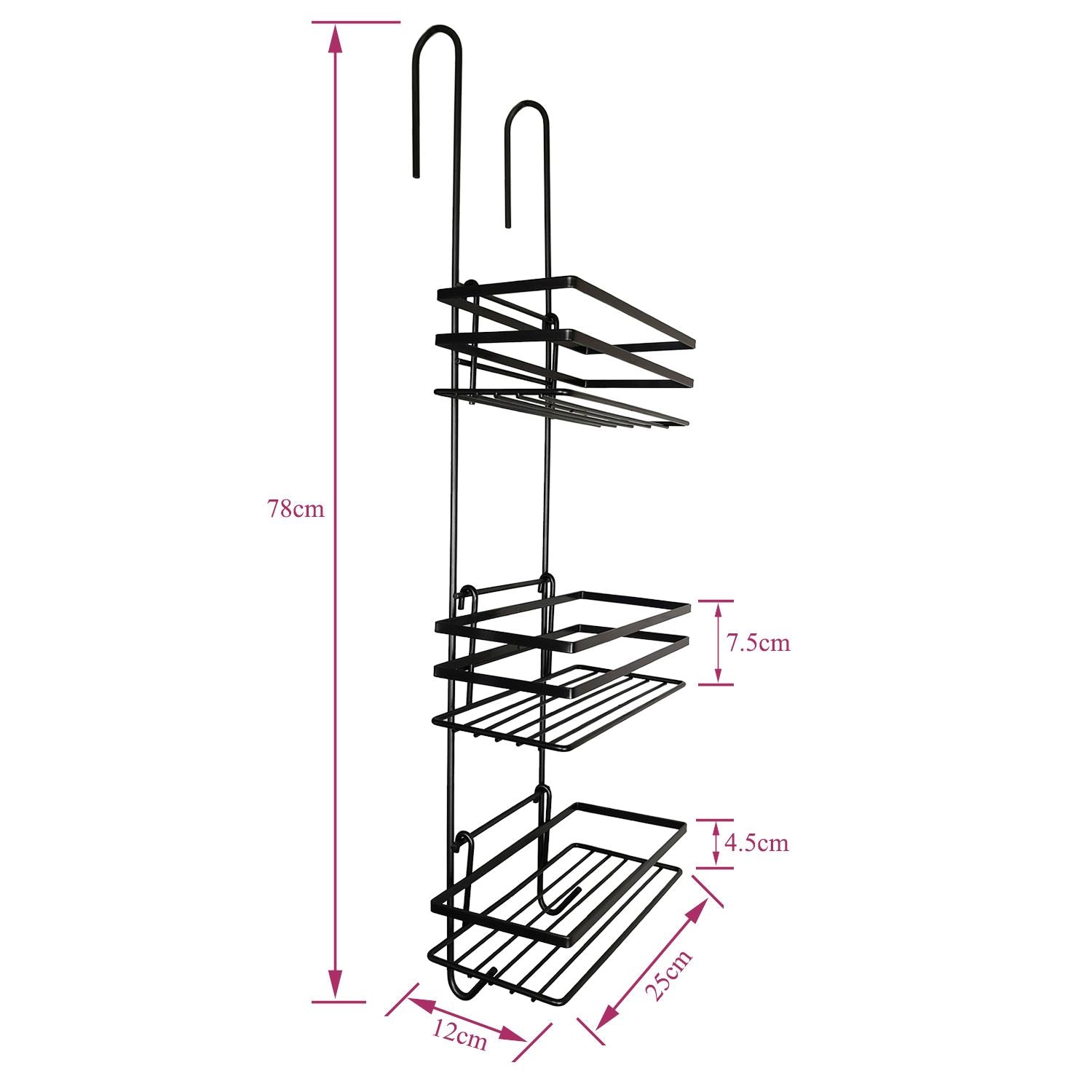 Stylish Black Rust-Proof Premium 3-Tier Hanging Shower Caddy with all Fixings - 79 H x 25 W x 12 D This stylish and high quality 3-tier hanging shower caddy is perfect for storing all your bath and body products and also looks superb hanging in any shower room. DIMENSIONS: 79 H x 25 W x 12 D (cm) COLOUR: Black EASY TO FIT Simply fit the shelves together and hang in your shower. EASY TO CLEAN: Simply use a damp cloth to wipe clean, then dry your shower caddy with soft cotton cloth. BUILT TO LAST Our shower caddy has been designed to withstand the test of time, made from premium grade steel and finished in a waterproof nano-coating, this shower caddy is built to last. SUPPLIED WITH 2 YEAR RUST-PROOF GUARANTEE To further demonstrate the superb quality of this shower caddy, it comes with a comprehensive 2-year rust-proof guarantee, meaning you can rest assured this shower caddy will look great for years to come. PURCHASE DIRECT FROM THE MANUFACTURER Get the best savings and lowest price on this premium shower caddy today by purchasing direct from ourselves - the manufacturer. Why buy elsewhere when the best deal is waiting right here.