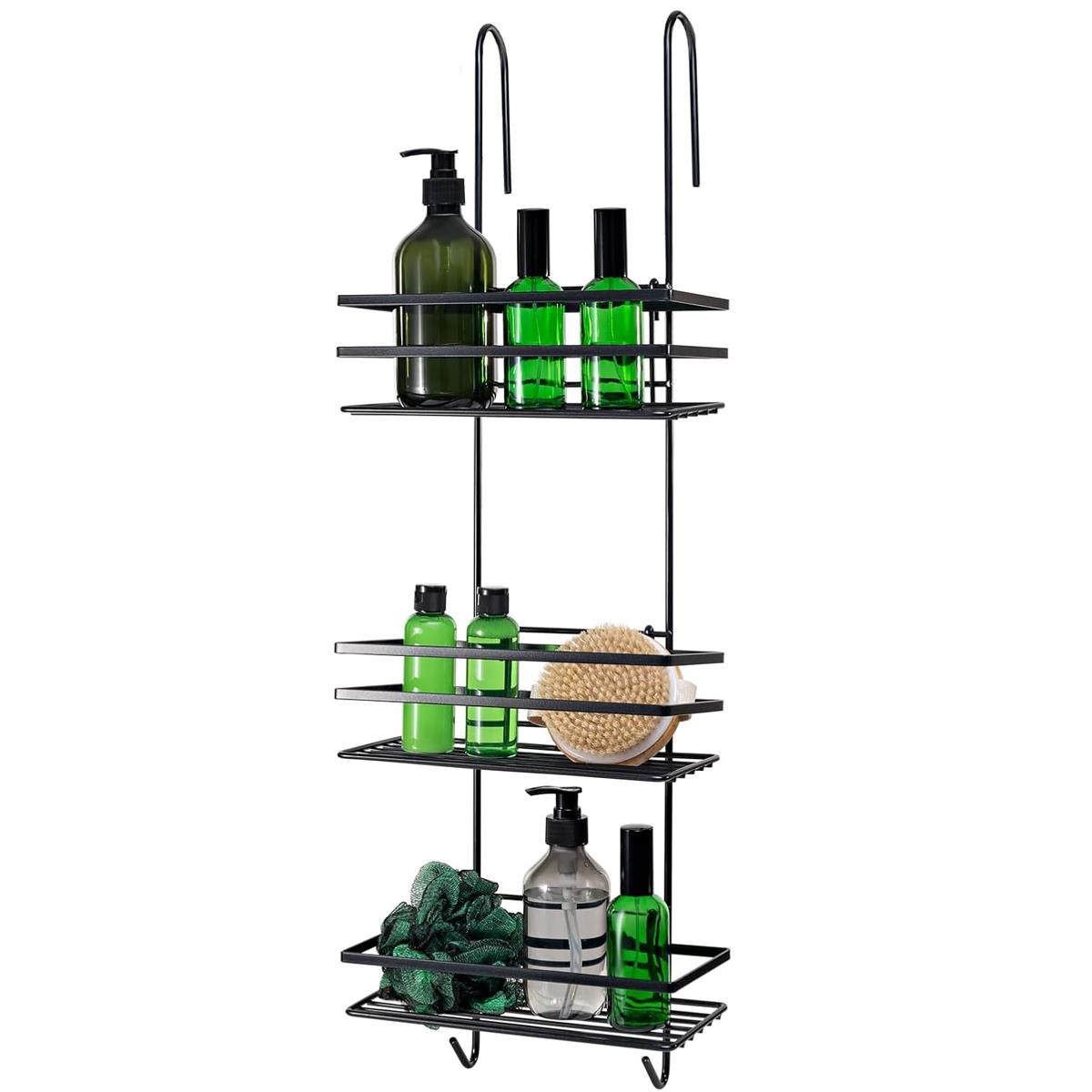 3 Tier Non Rust Hanging Shower Caddy Bathroom Organiser in Black