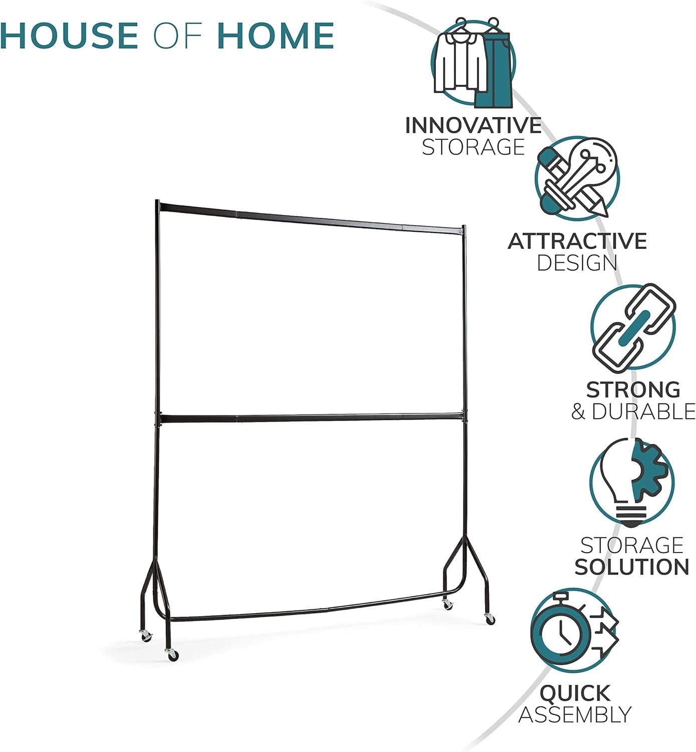 4ft long x 7ft Two Tier Heavy Duty Clothes Rail Garment Hanging Rack In Black