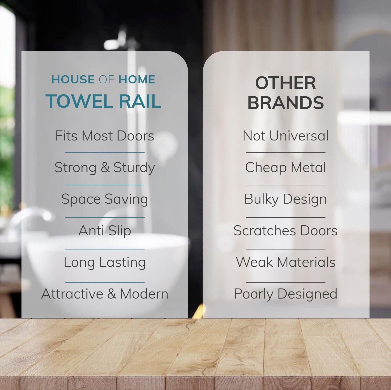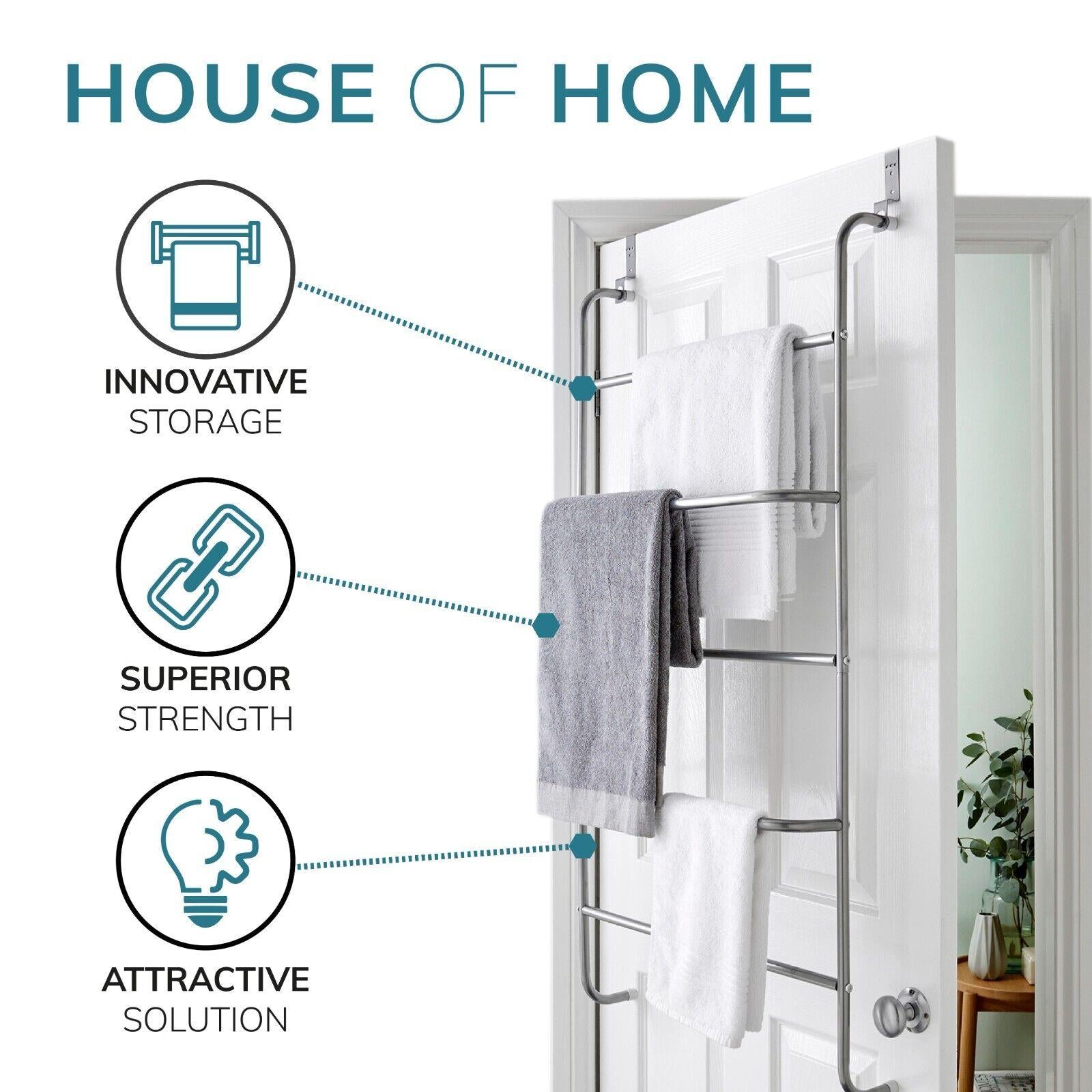 This metal clothes rack creates a practical storage space on your bathroom or bedroom door. Perfect for bath towels, hand towels or clothing. Simple to assemble, the over the door towel rail is simply hung up by the hooks above each door with thickness up to 4 cm. This allows you to flexibly use them throughout the household. Rubber non slip feet protect your door from and scuffs and scratches whilst keeping a firm grip when in use. This high quality towel rack is made of strong steel and powder coated to stand the test of time. Measuring 60 cm x 17.5 cm x 109 cm and with 5 clothes rails, the clothing bars offer generous space for your clothes and towels. Additional fixings included to further secure over door hooks.
