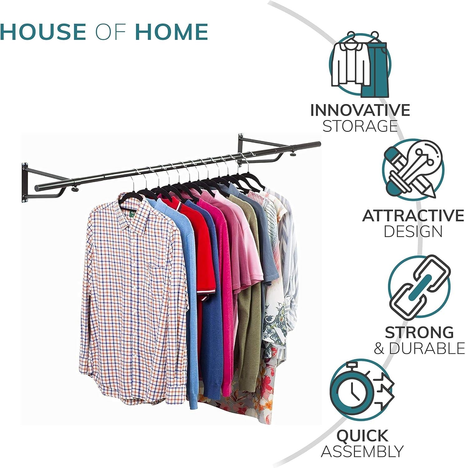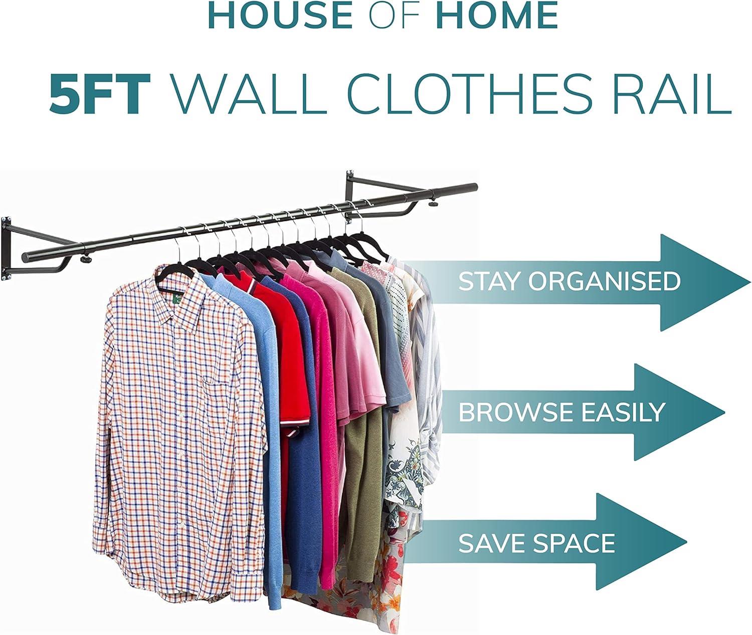 Perfect for bedrooms, walk in wardrobes, hallways and clothes shops. Great for hanging all types of clothing including heaver items like coats and jackets. Made from metal and finished in black powder coating. Available in two sizes - 4ft and 5ft. 25mm Tubing Brackets - 32cm x 15.5cm x 3cm Wall mounted brackets come with fixings and fixtures with full set of easy to assemble instructions.