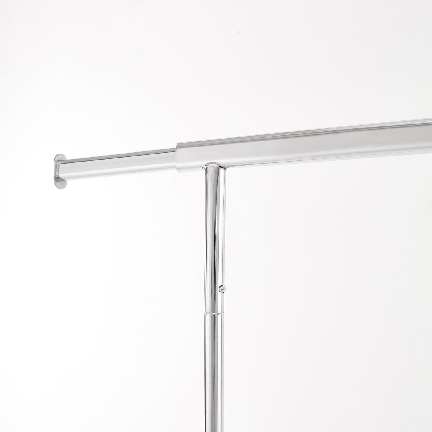 This heavy duty chrome clothes rail is designed for strength, style, and convenience. With an adjustable width of 92–132 cm (+40 cm with extendable bars) and height of 140–160 cm, it offers flexible storage for coats, dresses, and everyday clothing. The integrated lower shelf provides extra space for shoes, baskets, or boxes, while four reinforced lockable castors allow smooth movement and secure stability. Built from durable steel with a chrome finish, this rail supports up to 100 kg and is quick to assemble without tools. Total dimensions: 45D x 132W x 160H cm.