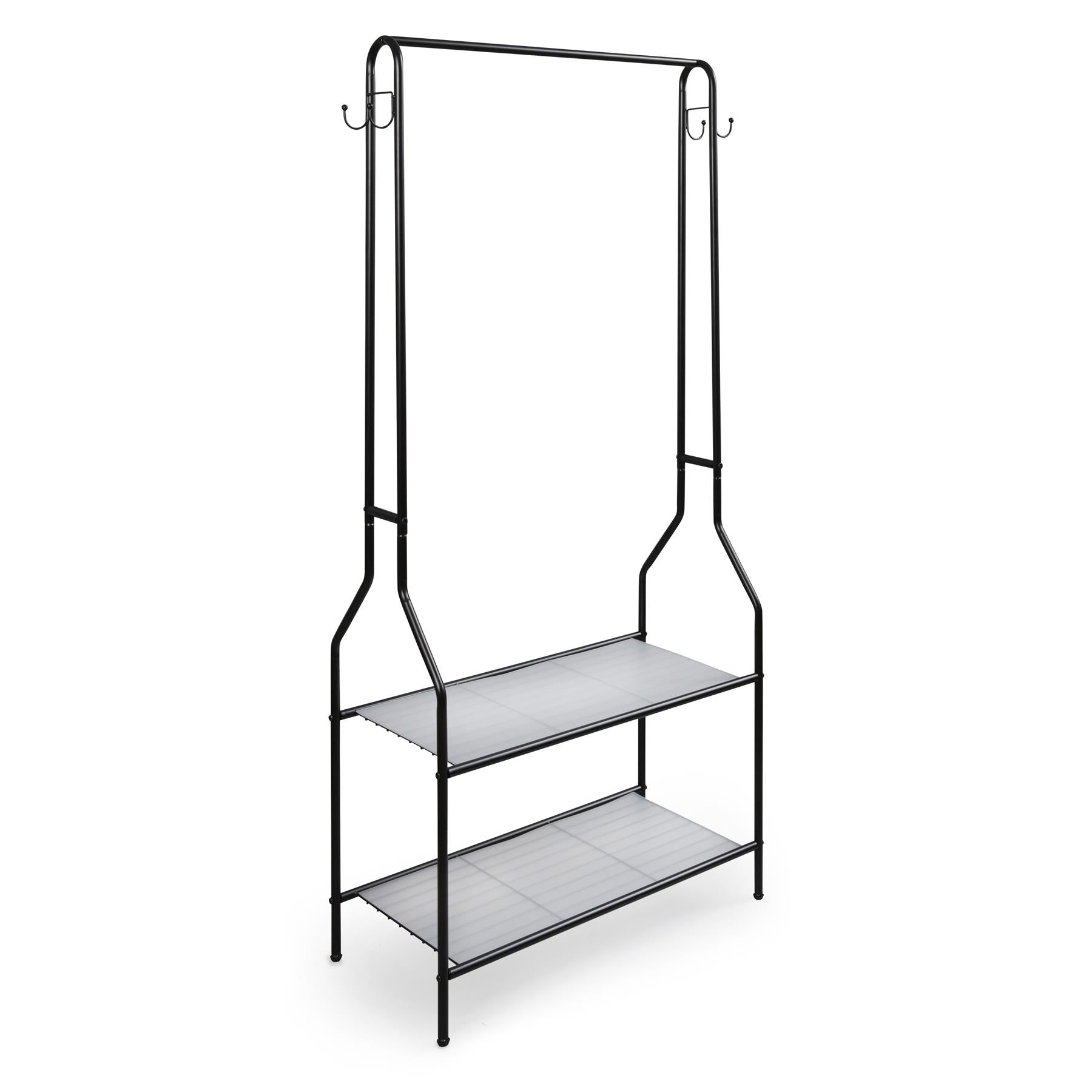 Clothes Rail Black With Two Shelves in Black Powder Coating
