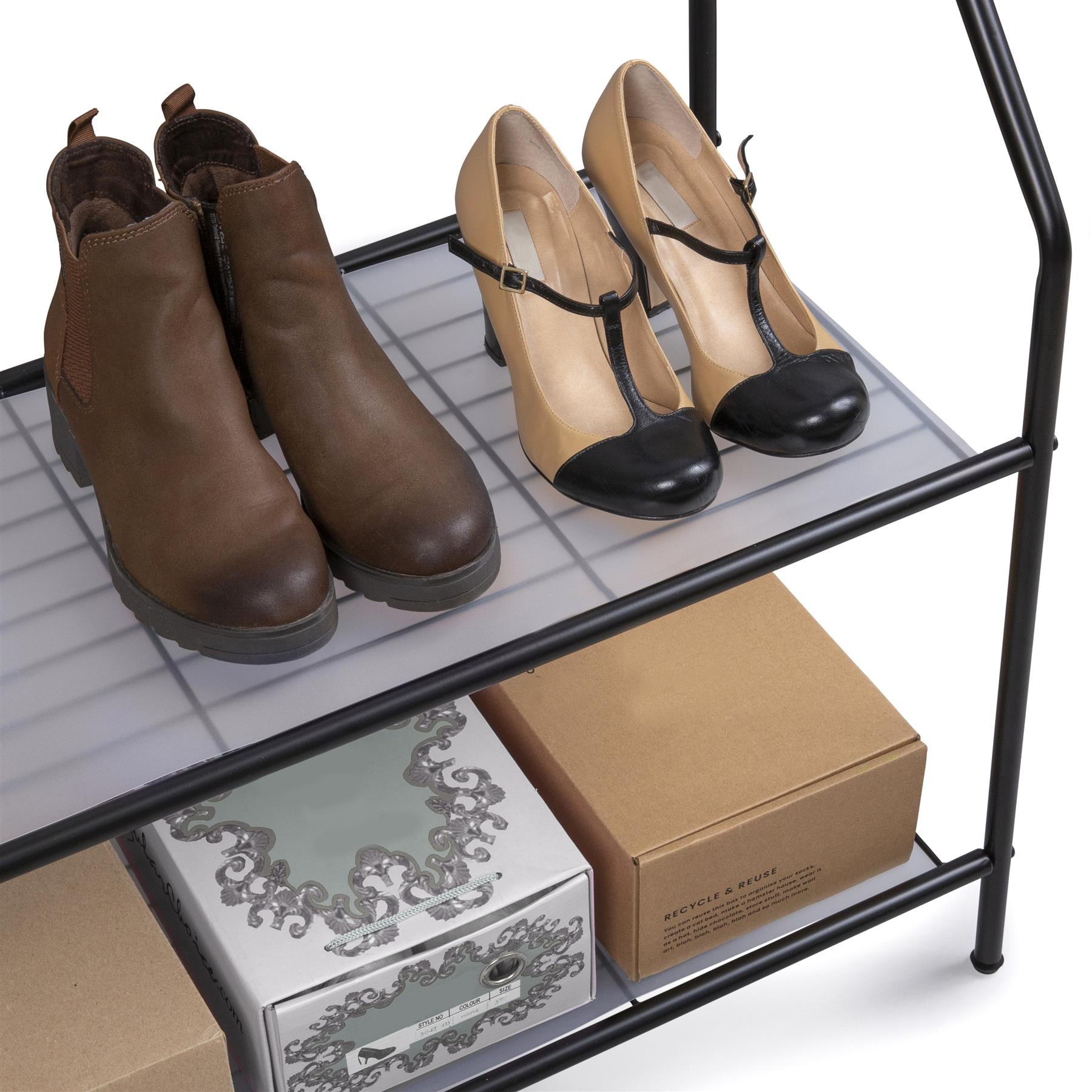 A great alternative to a wardrobe for space saving storage, the white clothes rail with two shelves is perfect for hanging clothes on display. It is the perfect storage solution not only for your bedroom but for hallways, offices and porches. The sturdy steel design finished in white powder coating can compliment all types of décor and adds a beautiful elegant style to the room. The clothes storage rail features 2 handy hooks on either side which are perfect for hanging bags, umbrellas, scarves and other accessories. The 2 lower shelves provide extra storage and organisation for shoes, boxes and baskets. Size: 150cm height x 68cm width x 34cm depth