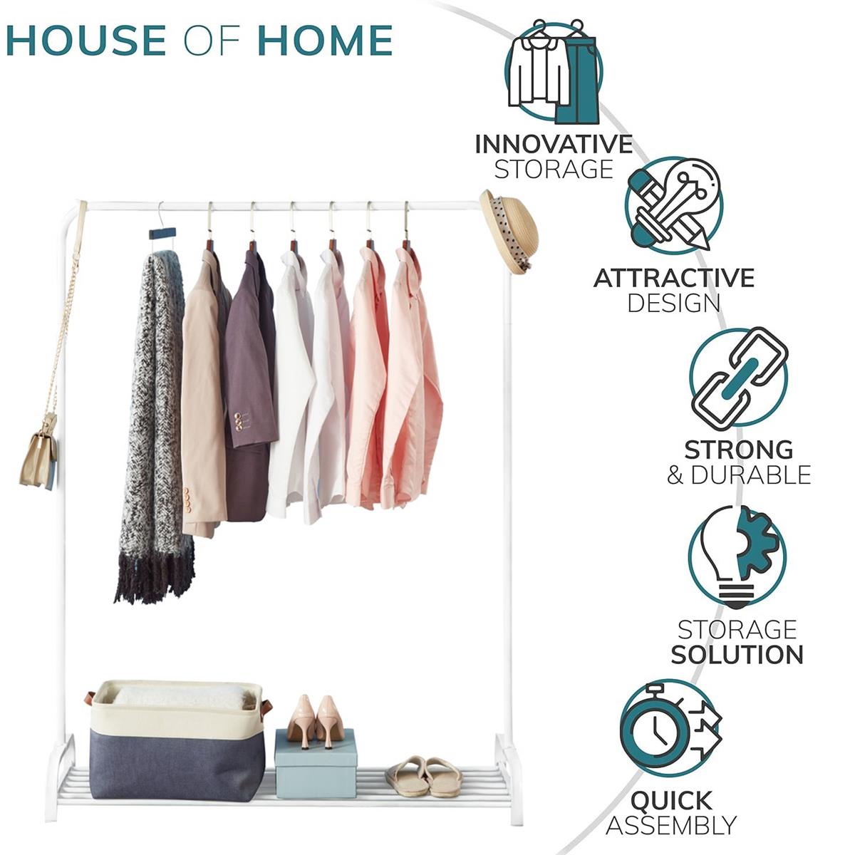 Clothes Rail Garment Rack With Shoe Storage Shelf Adjustable Feet Easy Build