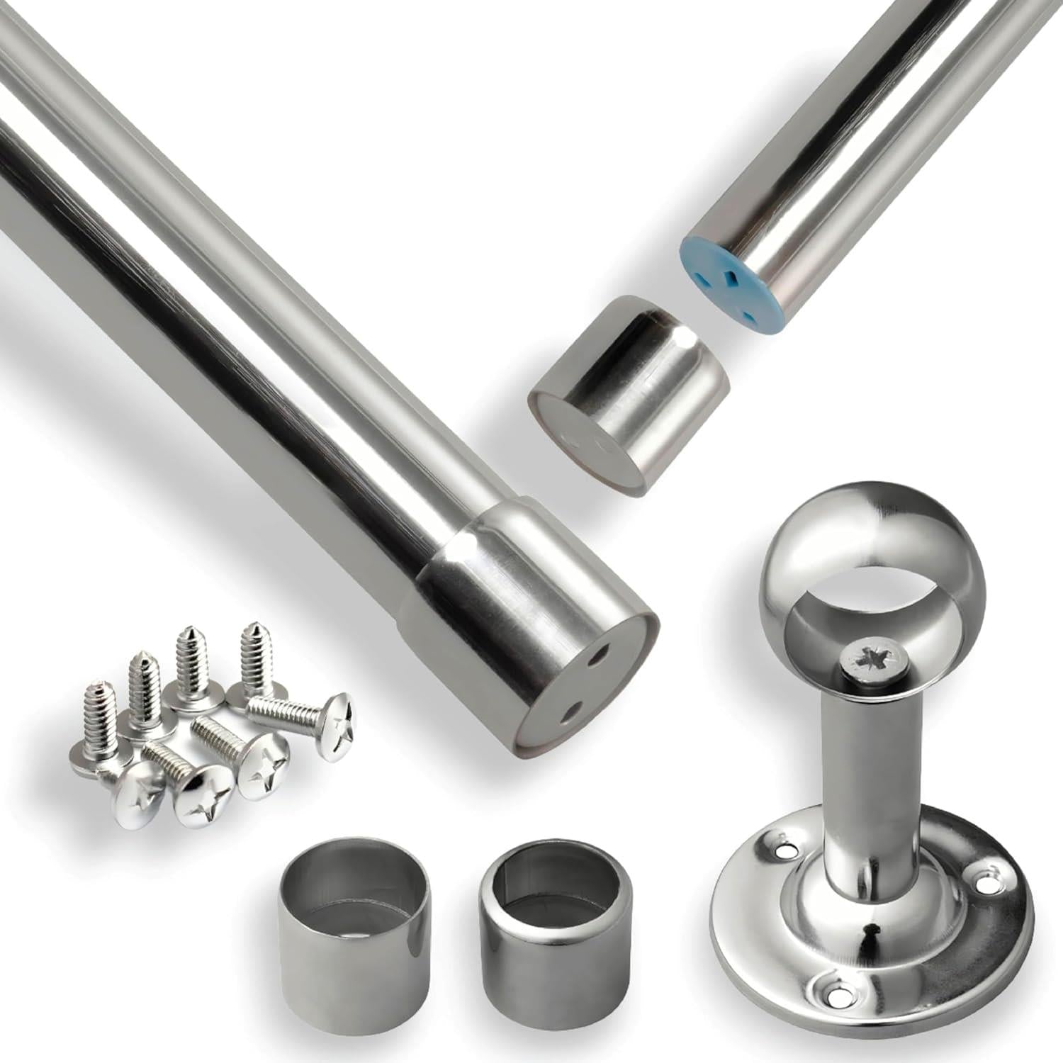 Experience the Perfect Grip: Our steel wardrobe rail is equipped with heavy-duty brackets and soft rubber grip ends for a secure fit, preventing the rod from falling and ensuring a snug hold on walls.