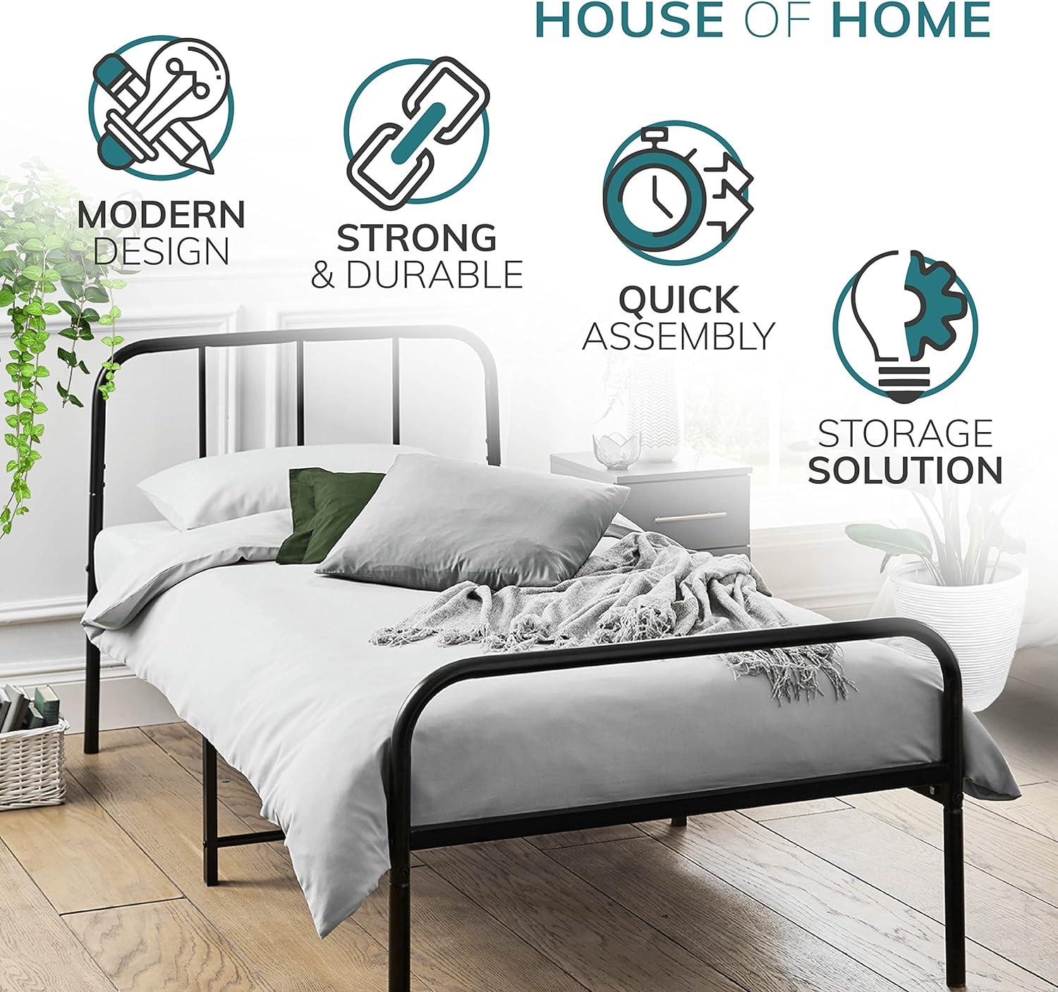 Single Bed Frame Metal Rounded Headboard Easy Assembly Under Bed Base Storage Space