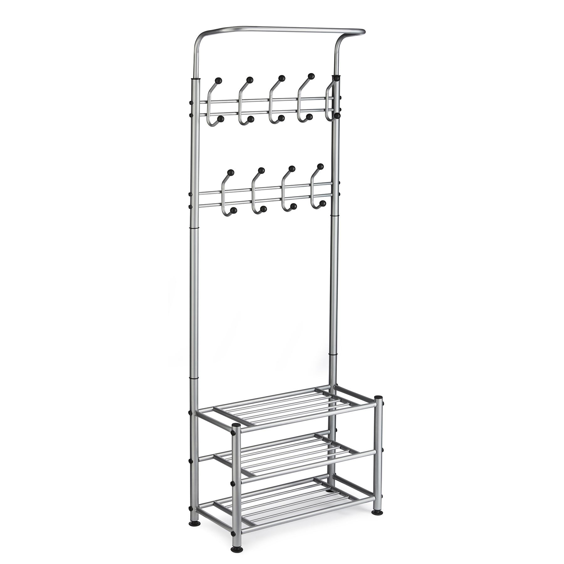 A great multi functional coat rack and stand with shoe rack. If you need extra hanging space and shoe storage then this will rack is a great storage solution. Will hold up to 18 garments, coats, jackets, scarves. Size - 188cm (H) x 68cm (W) x 31cm (D) This product is self assembly. Combined multi function stand for coats, hats, shoes, scarfs, umbrellas Made from strong steel construction and finished in grey coating Size - 188cm (H) x 68cm (W) x 31cm (D) 18 metal hooks for hanging your garments. Can hold up to 80KG