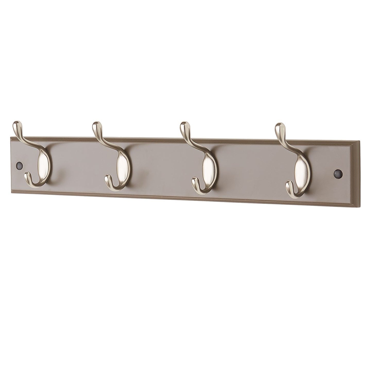 4 Double Hooks Espresso wall mountable coat hanger with 8 nickel hooks for hanging a variety of garments. Espresso board is made of wood. Comes complete and ready to use with wall fixings included. Can be mounted on to doors or walls. 4 double coat hooks will hang a variety of 8 items White mountable wooden board with 4 nickel hooks Comes complete and ready to use Wall fixings included Size: 7cm (H) x 45cm (W) x 1.5cm (D)